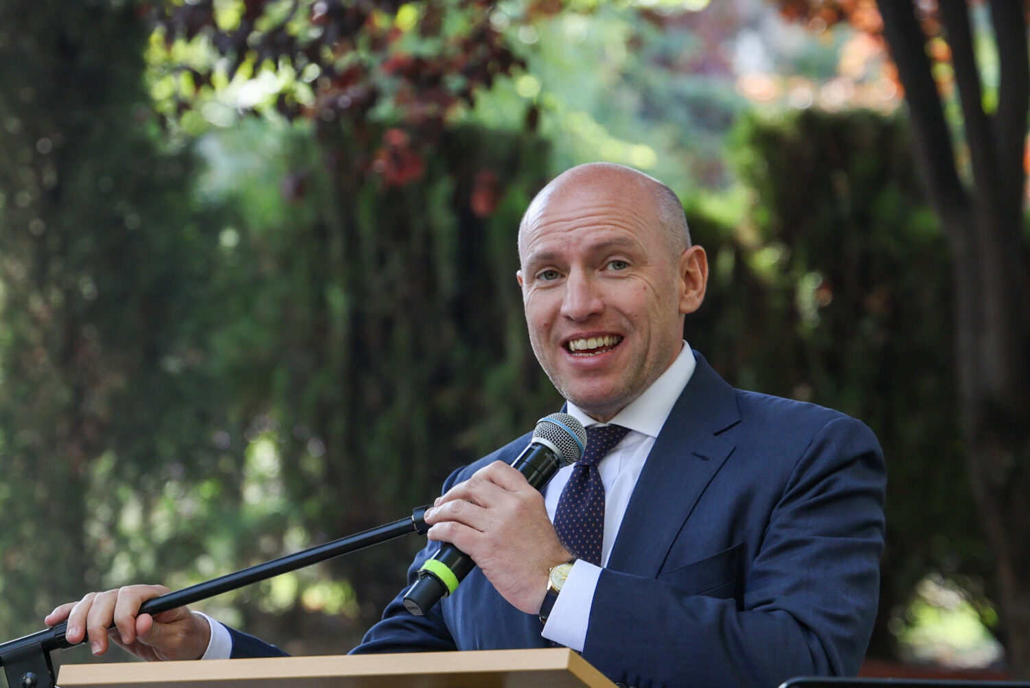 Following the national anthems performed by tenor Ünüşan Kuloğlu from the Ankara State Opera and Ballet, Ambassador Sorg began her opening remarks by recalling the reunification of the two German states 35 years ago: