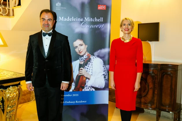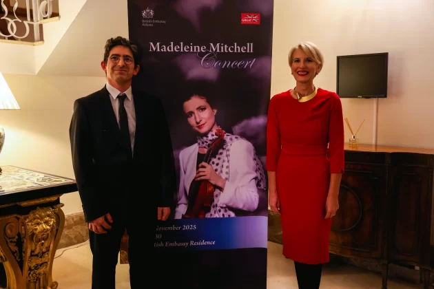 World-renowned British violin virtuoso Madeleine Mitchell performed a distinguished recital at the British Embassy in Ankara, blending classical and contemporary works. Young Turkish artists Cihan Yücel and İdil Dündar accompanied Mitchell on stage, adding a cross-cultural harmony to the evening.