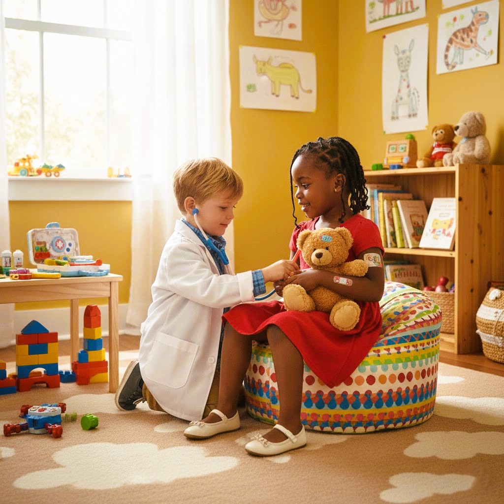 He draws particular attention to imaginative and symbolic play. When a child pretends, he says, the child is trying to understand what something represents and what they are exploring. Such play often reflects what children have lived through. A child who plays doctor, soldier, or pilot, for example, is usually engaging with experiences that have left an emotional mark. A hospital visit or a medical exam may “touch” a child, he says, and the child then reenacts it in play to understand what it means.