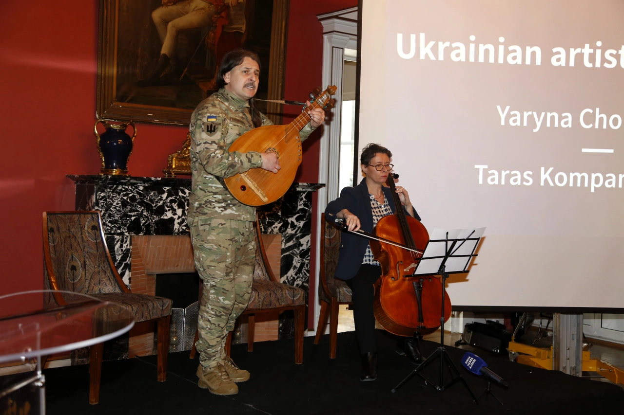After the speeches, traditional Ukrainian melodies were performed by Kompanichenko on the bandura, Ukraine’s national instrument. During “Forget Me,” he was accompanied on the cello by Ambassador Dumont.